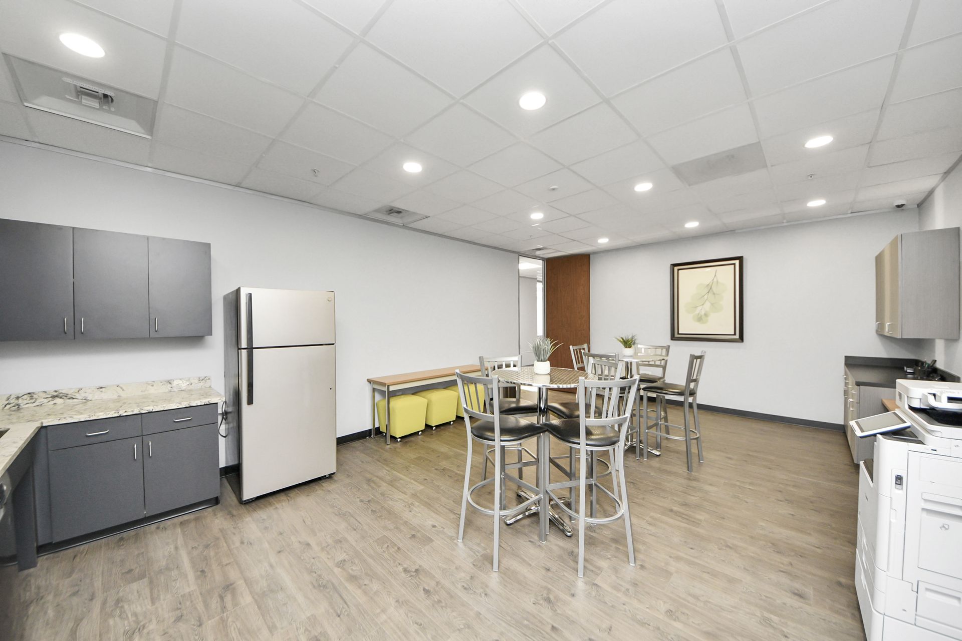 Enjoy access to our modern kitchen, fully stocked with coffee, tea, and filtered water. Take a break, prepare a snack, or have lunch—all the comforts you need to refuel during your workday.